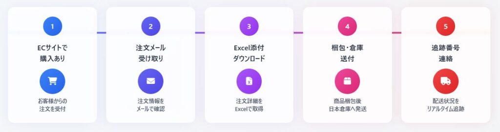 中国ECサイトでの注文から配送完了まで、効率的な運用フローをご提供します